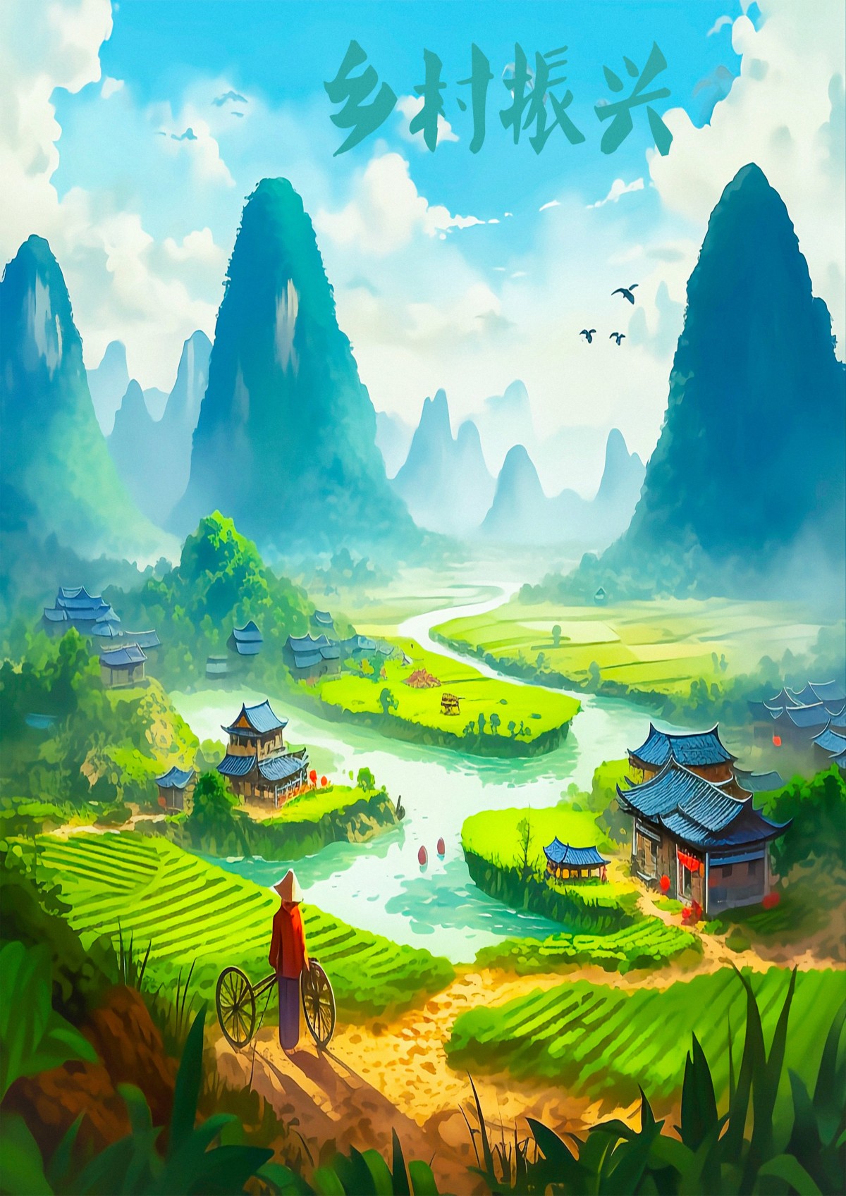 作品通过精心选取广西农村的美丽景色、特色产业和乡土文化元素,展现了广西农村的独特魅力;运用色彩明亮的图片和简洁大气的文字,打造具有强烈视觉冲击力的海报,吸引人们的目光;通过设计布局和图片的选择,营造出一种身临其境的感受,让观众仿佛置身于广西农村的美景之中。