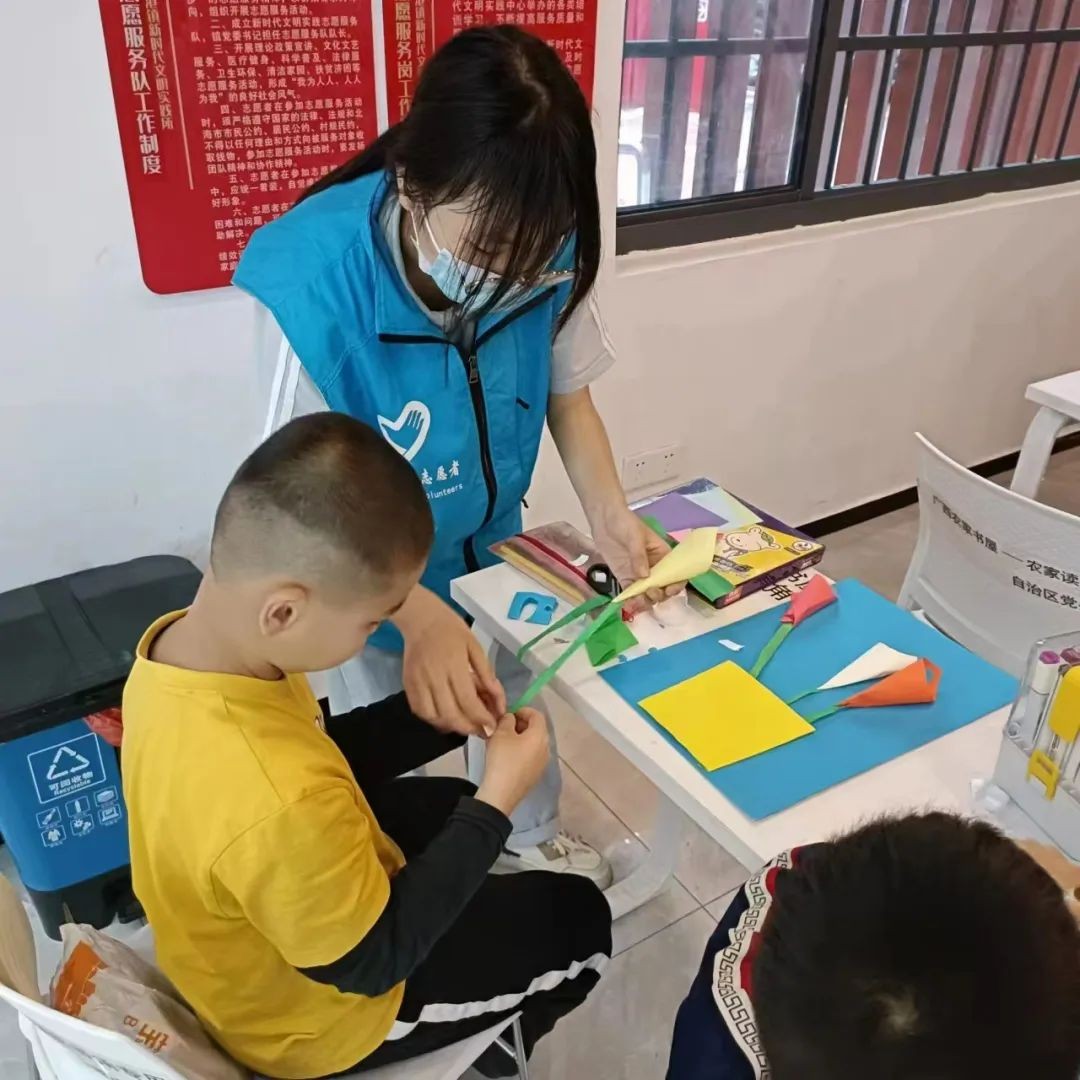 走入课堂,出色的志愿者们有效的将自己熟练掌握的专业知识传授给社区的孩子们,他们用彩色笔勾勒出每个孩子心中的理想,用铅笔教会孩子们用画表达自己的所思所想,不仅有绘画,还有手工制作,让孩子们用手的同时也保持头脑的灵活。志愿者们用画笔在黑板上绘着小朋友充满希望的未来、用巧手在课桌上折出多样的世界,孩子们纯真的笑脸和创意满满的作品打动了青年志愿者们,他们更加坚定心中信念,要用知识传播爱。