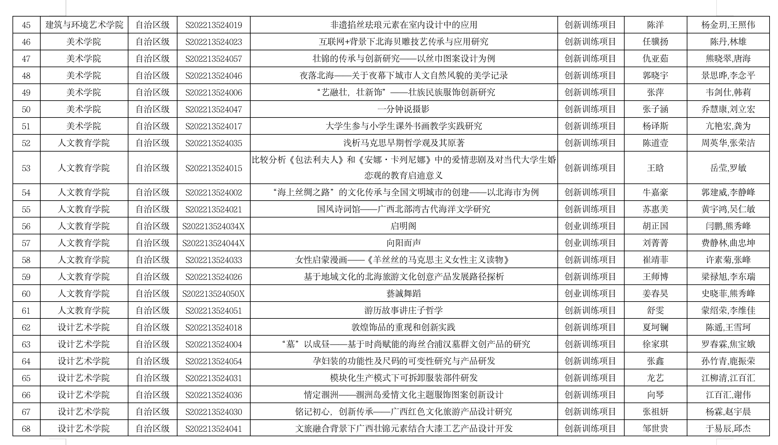 4.北海艺术设计学院大学生创新创业训练计划项目中期检查汇总表
