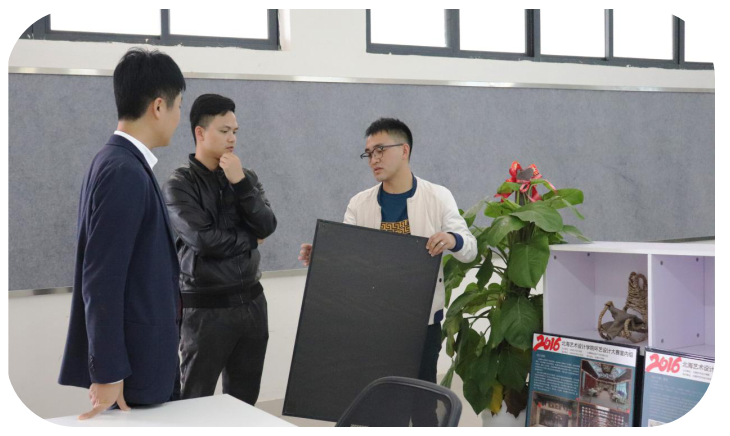 在交流过程中,杨总经理深刻地讲解了灯光运用的灵活性,如何利用照明效果来搭配空间等等,让我们感受到在室内设计中注重灯光体验以及灯光设计精致化的重要性。同时,杨总表示愿意提供各类照明仪器建立灯光照明技术实验室,开展基础灯光知识、灯具市场发展等系统性课程培训,为学生提供一个真正认知、了解灯光的平台。