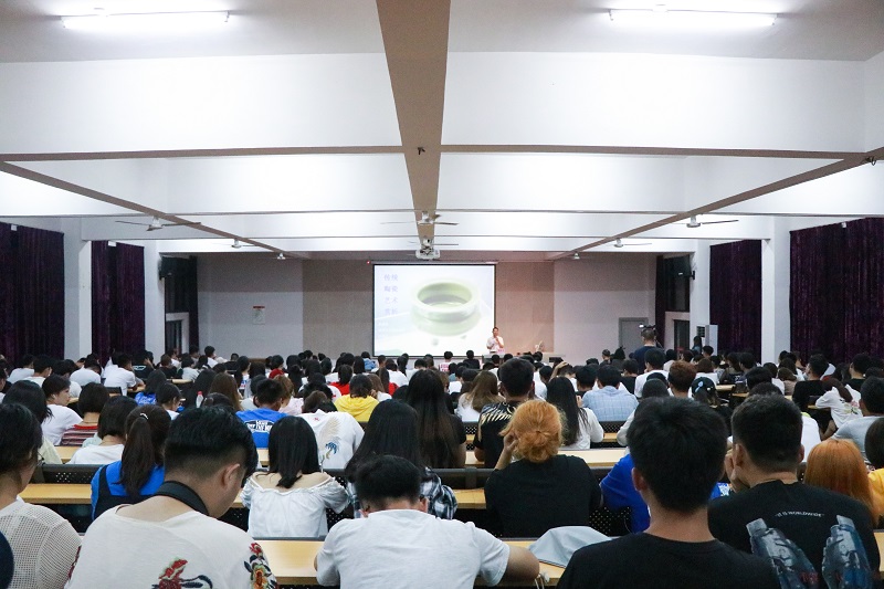 讲座开始,董素学教授阐述了陶与瓷的差别,介绍瓷器颜色间的差异由手工工艺、烧成的温度和材质决定。董素学教授简述了陶与瓷的不同概念 ,运用互动的方式讲解,并分享了精美的瓷器图片,在场师生不禁感叹瓷器间的变化如此丰富多样,产生一系列关于瓷器的遐想。