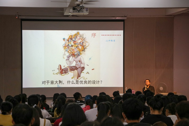 2018年6月3日9:00于我校西校区伦理楼107,清华大学美术学院副院长、著名设计师、设计评论家、中国建筑学会室内设计分会理事长、环境建设艺术咨询研究所所长苏丹带来一场题为《理性与浪漫的交织——意大利设计历史与未来》的精彩讲座,广大师生现场聆听讲座。