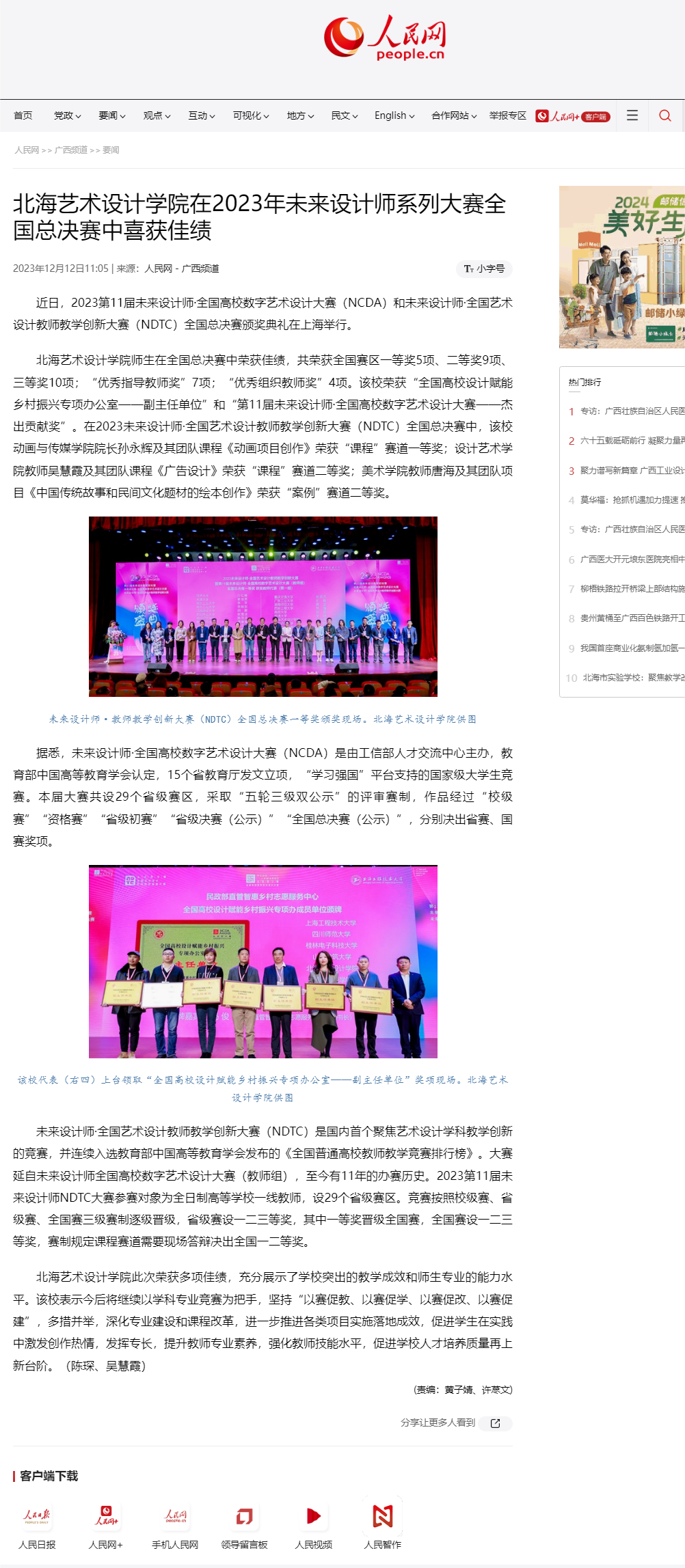 人民网:北海艺术设计学院在2023年未来设计师系列大赛全国总决赛中喜获佳绩
