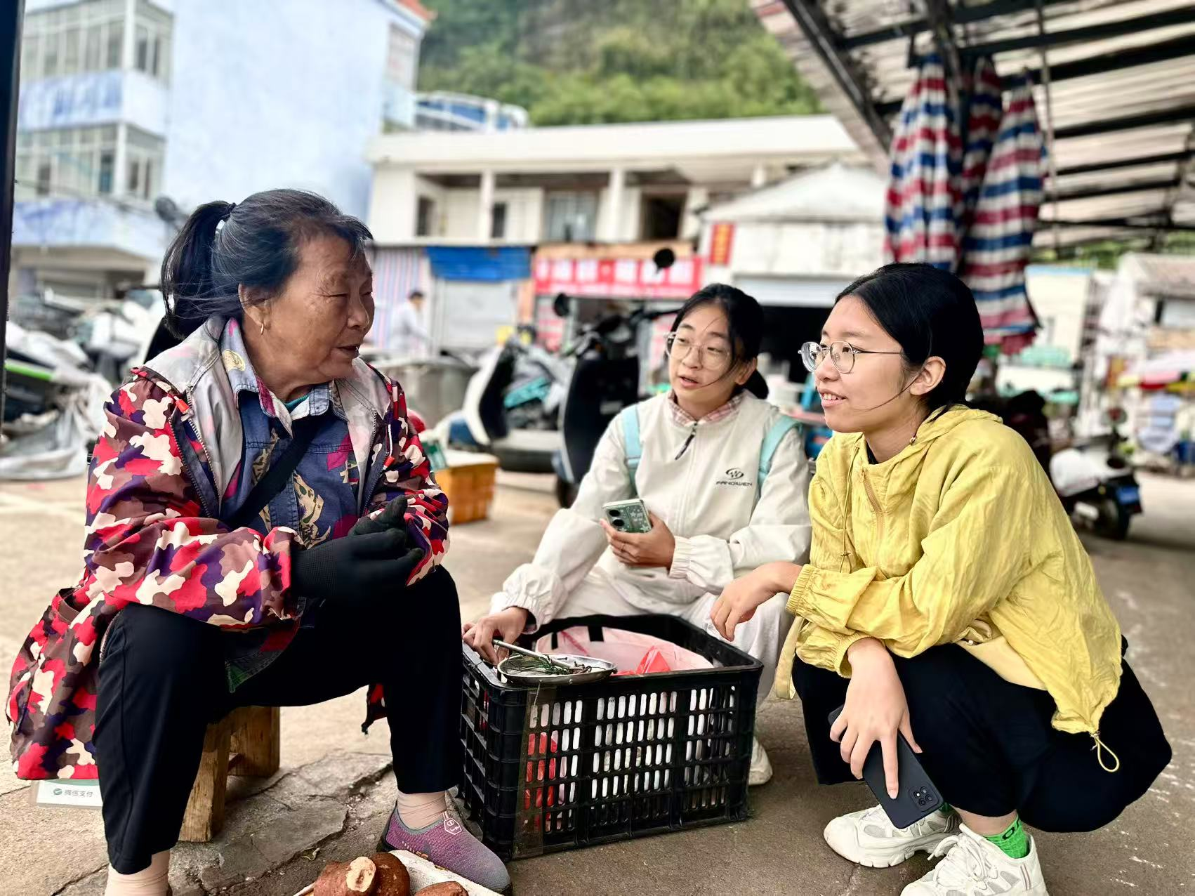 (横岭村老人与师生交谈)