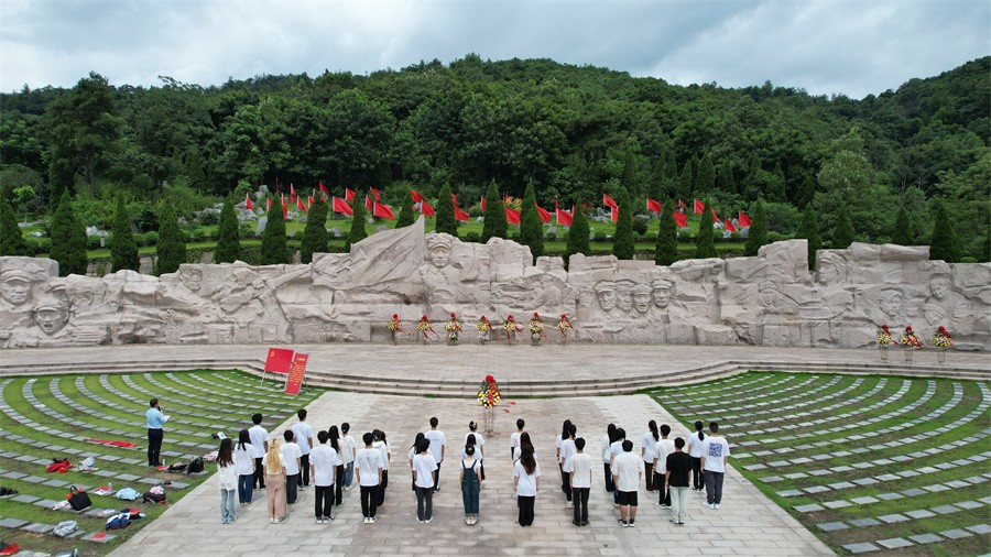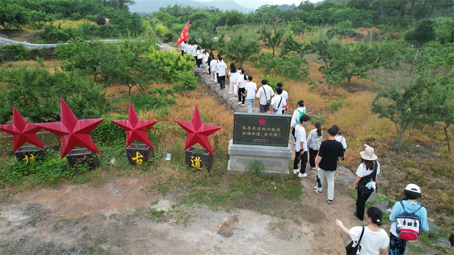 师生们围绕湘江战役,探访红军长征湘江战役纪念馆、脚山铺阻击战革命遗址、湘桂古道等,拼凑起长征途中最为惨痛、悲壮,却无比辉煌的著名战役——湘江战役,从中深刻感受“勇于胜利、勇于突破、勇于牺牲”的革命斗争精神。同时,通过瞻仰湘江战役新圩阻击战酒海井红军纪念园烈士、“湘江战役”实景教学、聆听朱缀绒先进事迹故事和参观毛竹山村等活动,在重走习近平总书记足迹中进一步体悟伟大精神力量,引导同学们坚定求学报国的理想与信念,接受革命先烈的精神洗礼,成长为听党话、跟党走的时代新人。