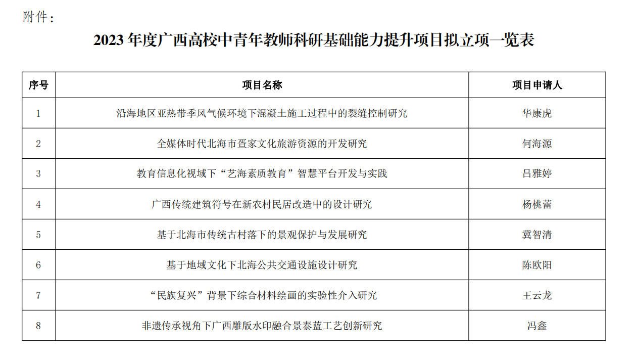 附件:北艺科研〔2022〕28号关于2023年度广西高校中青年教师科研基础能力提升项目拟立项评审结果公示