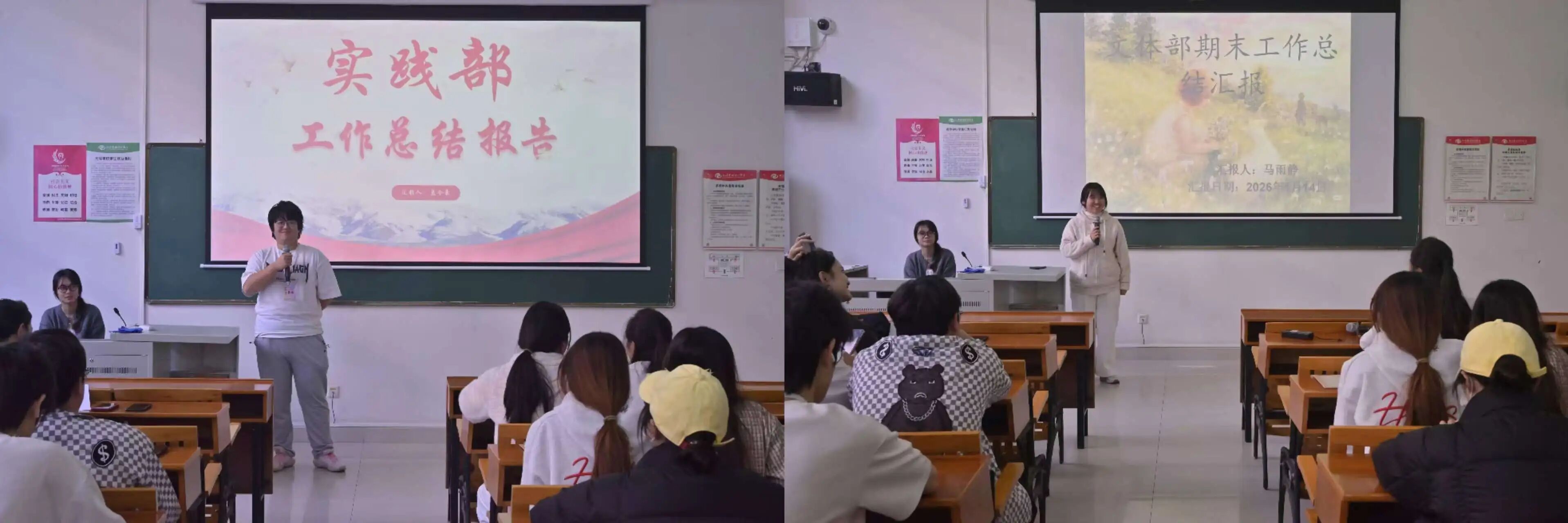会议伊始,由各部门负责人对本部门工作进行总结汇报,主要汇报各部门的工作亮点、成果、遇到的困难与解决方案以及下学期的工作计划。随后由团总支主席缪仁文进行工作总结。
