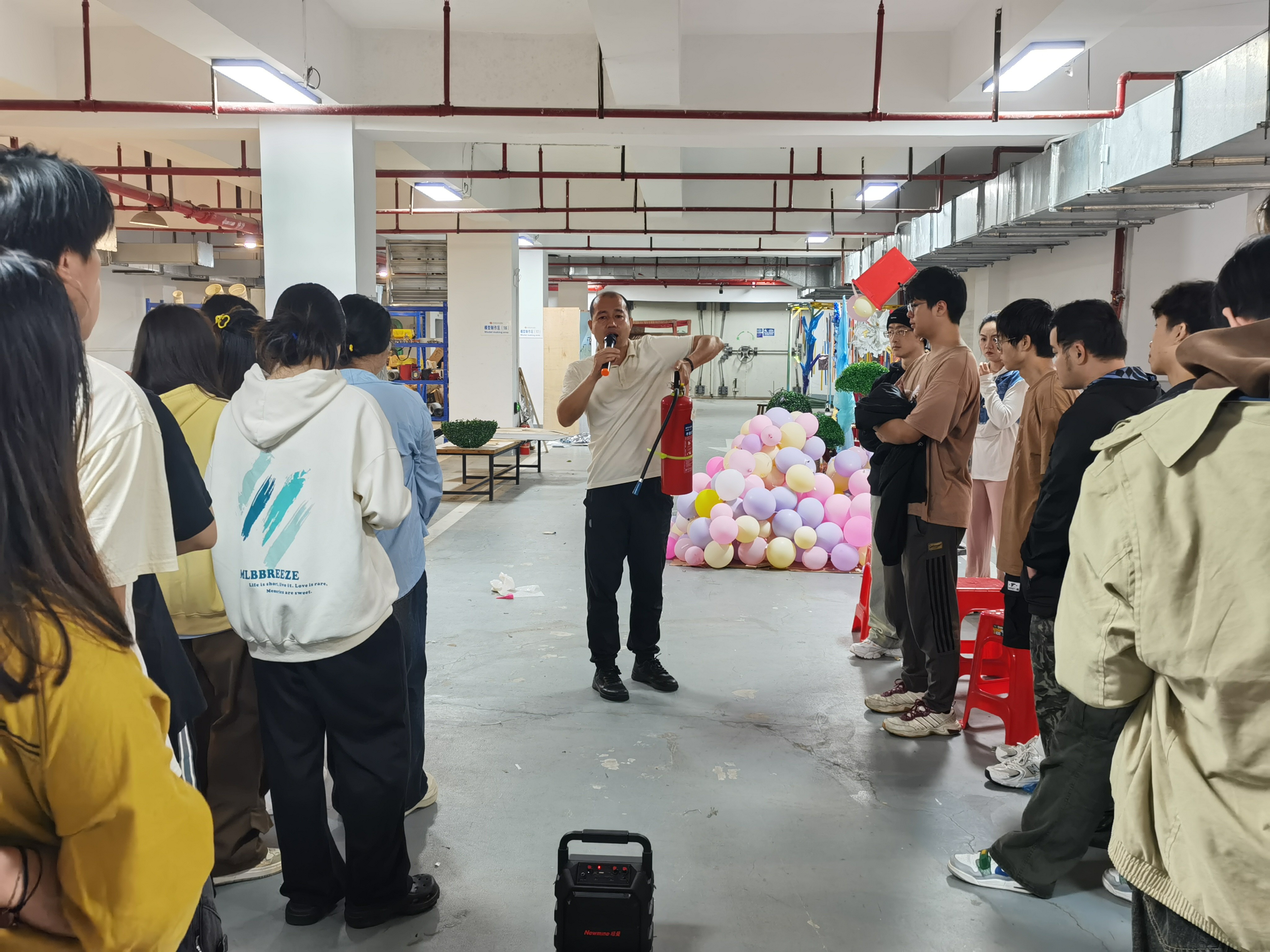 为进一步增强师生安全意识,提高师生应对突发事件的能力3月13上午,学校保卫处与建筑与环境艺术学院在模型工坊实验室组织了实验室消防疏散演练建筑与环境艺术学院156名师生和保卫处工作人员参加了此次演练活动。