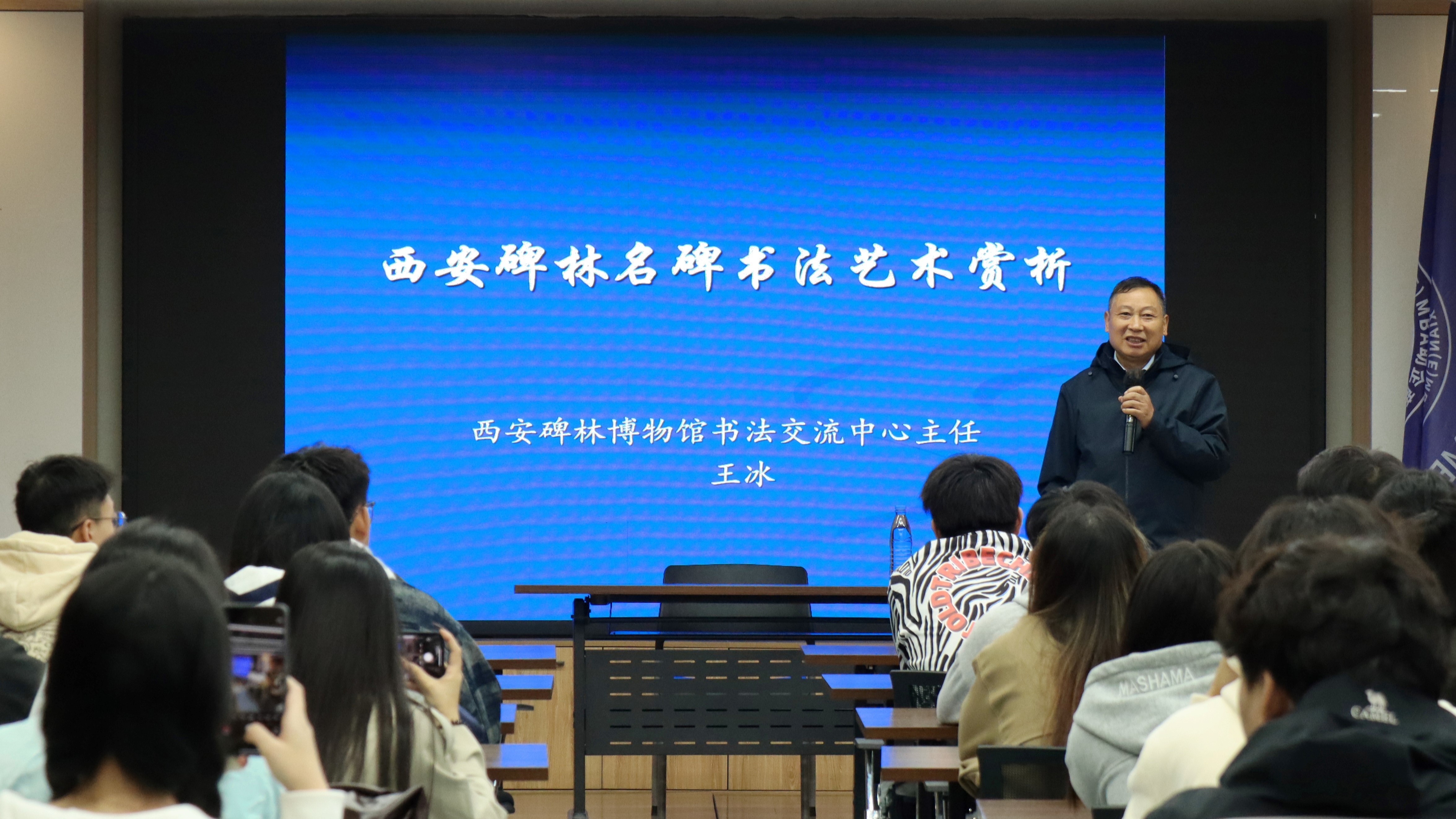 随后的几日研学中,同学们在西安交通大学参加多场精彩的书法讲座,并与西安诸多书法前辈进行书艺交流。讲座邀请西安市书法家协会第五届副主席李和生先生、西安碑林博物馆书法交流中心主任王冰先生等多位书法名家,同学们在讲座中获益匪浅。同学们在对西安碑林博物馆的考察中,亲身观摩在书法史上负有盛名的碑刻拓片,比如秦代李斯的篆书《峄山碑》汉合阳令《曹全碑》欧阳通楷书《道因法师碑》等。同学们一边欣赏,一边学习,一边记录,零距离感受书法名碑的艺术魅力。