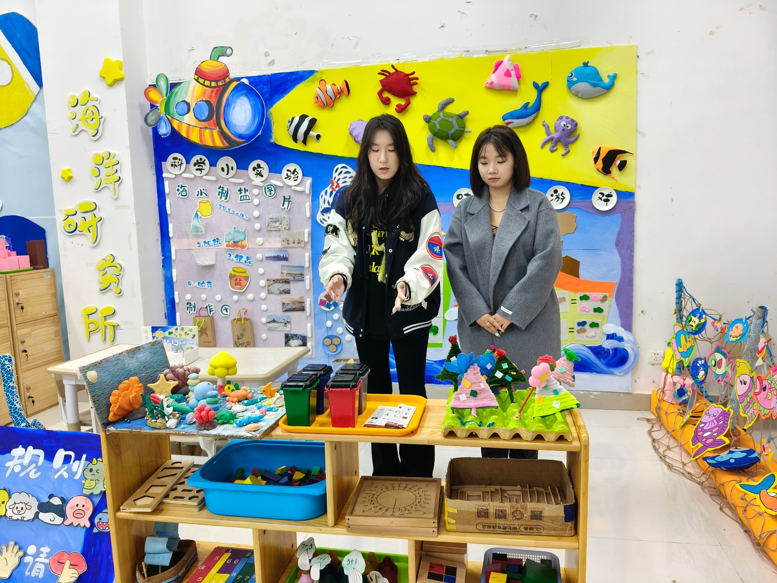 幼儿园环境创设课程是美术综合知识技能结合幼儿园实践工作的具体实操课程,专业指向性强。本课程使学生初步具备独立创设幼儿园环境的能力,树立正确的学前教育观念。本次结课汇报展共展出作品六组,均以幼儿园环境创设基本理论为基础,联系教育见习经验,并巧妙结合北海地方文化特色。此次汇报展是对学前教育专业阶段性教学成果的一次检验。