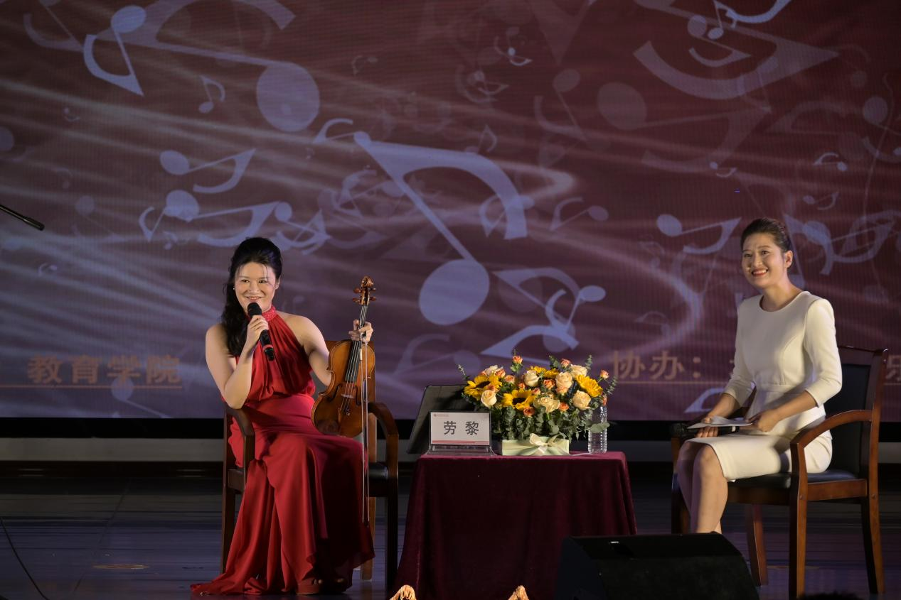 在访谈环节,劳黎分享了自己丰富的跨文化学习经历。从中央音乐学院的专业训练,到赴美、西班牙深造,不同文化背景下的音乐学习与碰撞,极大地拓宽了她的音乐视野。她深刻认识到,小提琴作为最接近人声的乐器,是东西方文化交流的绝佳载体。用小提琴诠释中国音乐,不仅能传递传统文化的深厚内涵,更能打破艺术界限,实现文化的交融与创新。她特别提到,赵季平《第一小提琴协奏曲》凝聚了作曲家十年心血,通过弦乐的叙事性表达, “大爱” 主题展现中国音乐。