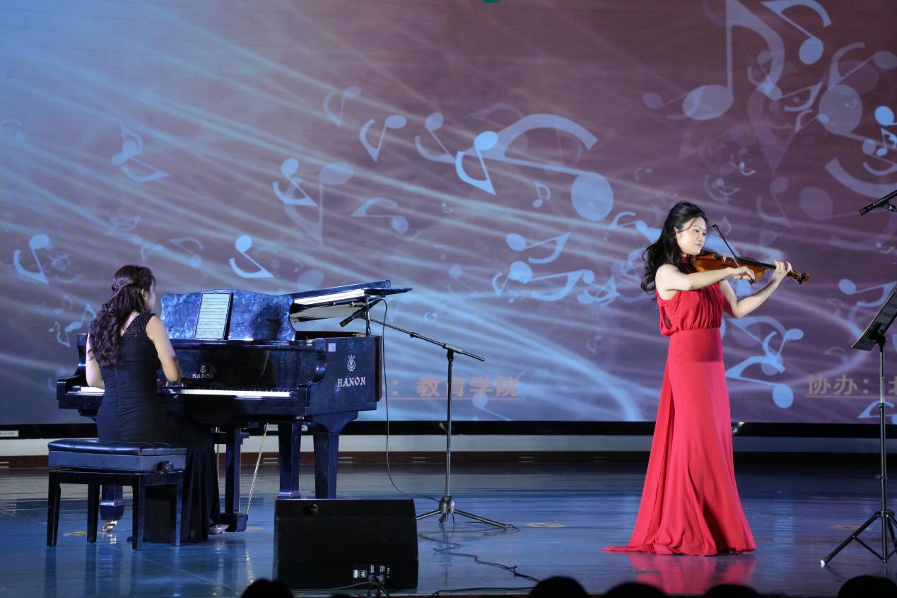 2025年5月9日晚,北海艺术设计学院为深化美育教育实践、提升学生的艺术修养,特邀请到国际乐坛备受瞩目的中国小提琴演奏家、中央音乐学院管弦系劳黎老师,以“乐贯东西・与光同尘”为主题,用灵动的琴弦编织出跨越国界的艺术对话。北海艺术设计学院校长卢新华、副校长包建明、总督学王斌、纪委书记王照伟、教育学院院长熊秀峰、副院长蒙剑英等领导出席了本次活动。同时,本次活动受到了北海市文艺界与教育界的广泛关注,北海市音乐家协会主席林海等众多社会各界的音乐爱好人士莅临活动现场。