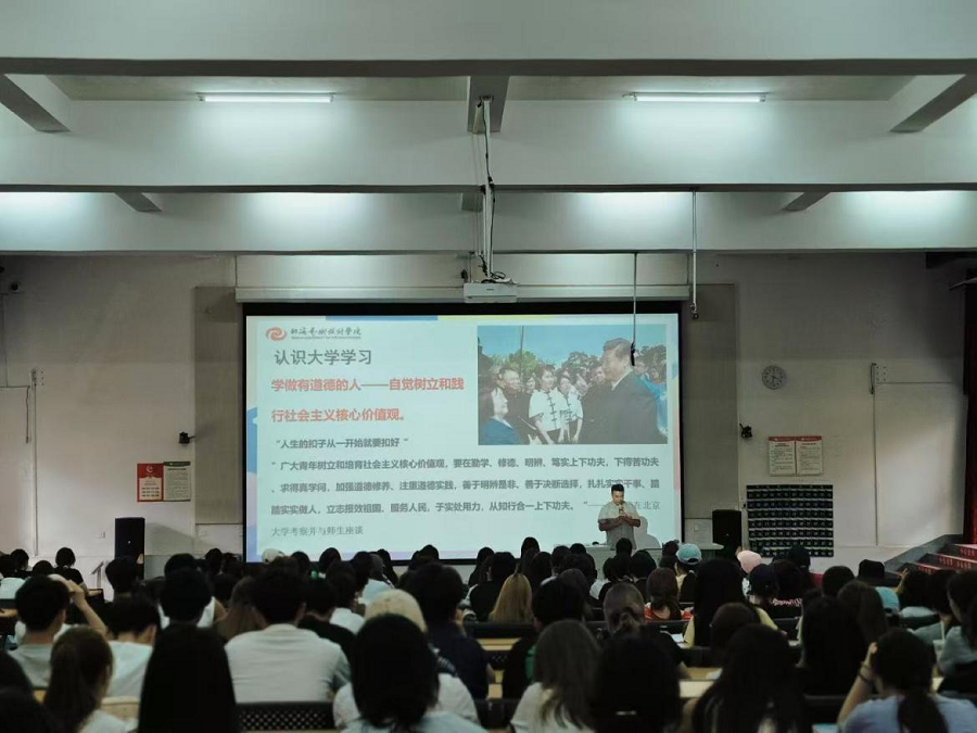 学院李谦副院长通过讲授《学业指导与课堂管理》,帮助新生们尽快适 应大学生活,明确学习方向,掌握科学方法,解决学业核心问题。