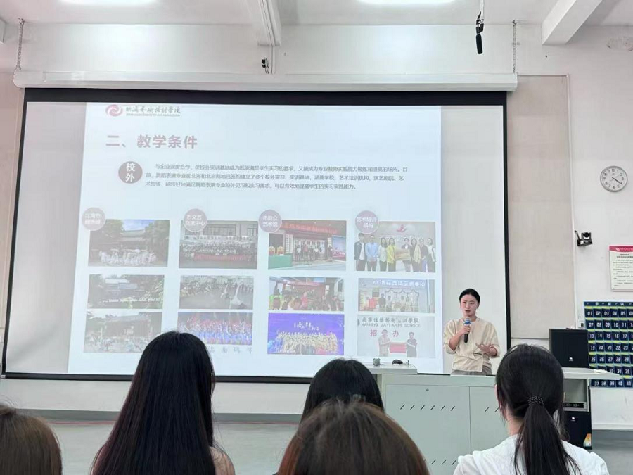 学院常务副院长邓欢从历史沿革、专业特色、师资力量、艺术成果等多个维度,对学院进行了全方位介绍。学院在国内外各类舞蹈赛事和艺术 展演中屡获殊荣,为舞蹈艺术领域输送了大量优秀人才。同时,学院不断探索创 新人才培养模式,注重理论与实践相结合,为学生搭建舞台实践、原创剧目创作 等平台,助力每一位舞蹈学子在艺术道路上绽放璀璨光芒。学校秉持“道德为本,艺术求精 ”的办学理念,形成了“双城育人、双名引领 ”的鲜明特色。实施实行 3+1 ”(北海 + 北京)培养模式,学生前三年在北海接受北部湾地域文化和海洋 文化的熏陶,完成通识教育、专业基础及专业课程学习的;大四时期北京实践基 地,依托首都的资源优势,开实践实习,开拓艺术创作视野。