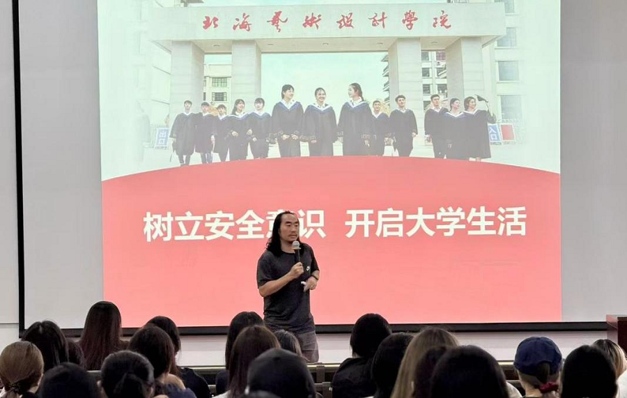 学院学工办主任谢鹏主讲了《大学生安全意识教育及学生手册》,引导 学生筑牢安全防线、紧绷纪律之弦,将规章制度内化于心、外化于行。
