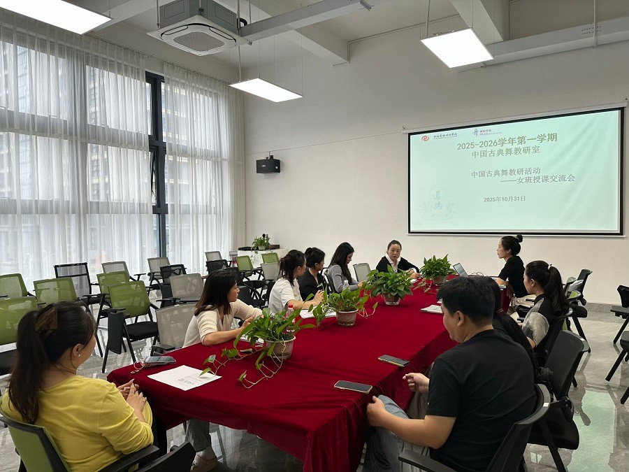 为深耕中国古典舞教学创新、强化师资队伍建设、弘扬中华优秀传统文化,2025年10月31日,舞蹈学院中国古典舞教研室成功举办教学能力提升研讨会。教研室全体教师参会,主任黄悦、曾凡冰教授全程统筹指导,以教研聚力推动教学质量与文化传承双提升。