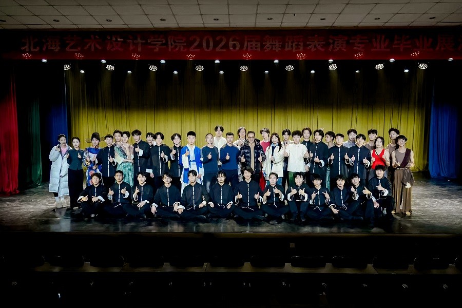 此次毕业展演的圆满落幕,既是对2026届舞蹈表演专业学子学习成果的集中检阅,也为他们的校园艺术生涯画上了圆满句点。北海艺术设计学院舞蹈学院将继续秉持育人初心,深耕专业建设,为舞蹈艺术领域培育更多优秀人才。(王飞/摄)
