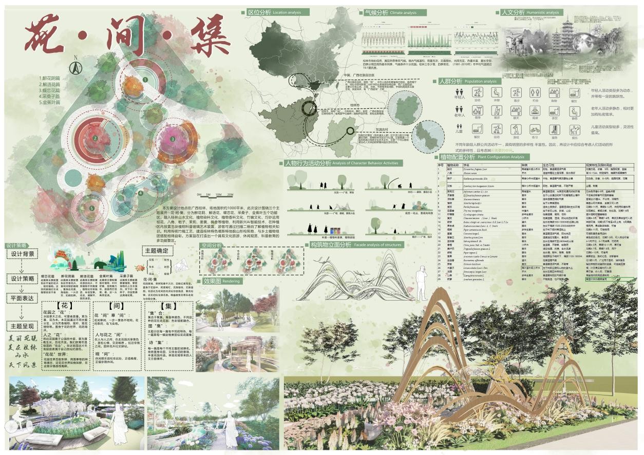 近日,由广西风景园林学会主办,桂林理工大学旅游与风景园林学院和东漓古村联合承办,广西大学林学院、广西艺术学院建筑艺术学院、桂林旅游学院旅游管理学院、玉林师范学院生物与制药学院/农学院、广西大学行健文理学院理工学部、广西建设职业技术学院建筑与规划学院协办的第三届广西“桂花杯”小花园设计竞赛圆满落幕。我校建筑与环境艺术学院学生作品《温竹摇》(作者:钟小雨、郭文静)获一等奖,《憩林间》(作者:徐子涵、郦嘉倩、裘嘉茵、朱潘格)获三等奖、《花间集》(作者:陈倩倩、刘雨薇、马晓晓、黄莹、温文丽)获三等奖,建筑与环境艺术学院昌秋霞老师获“优秀指导教师”荣誉,我校获“优秀组织单位”荣誉。