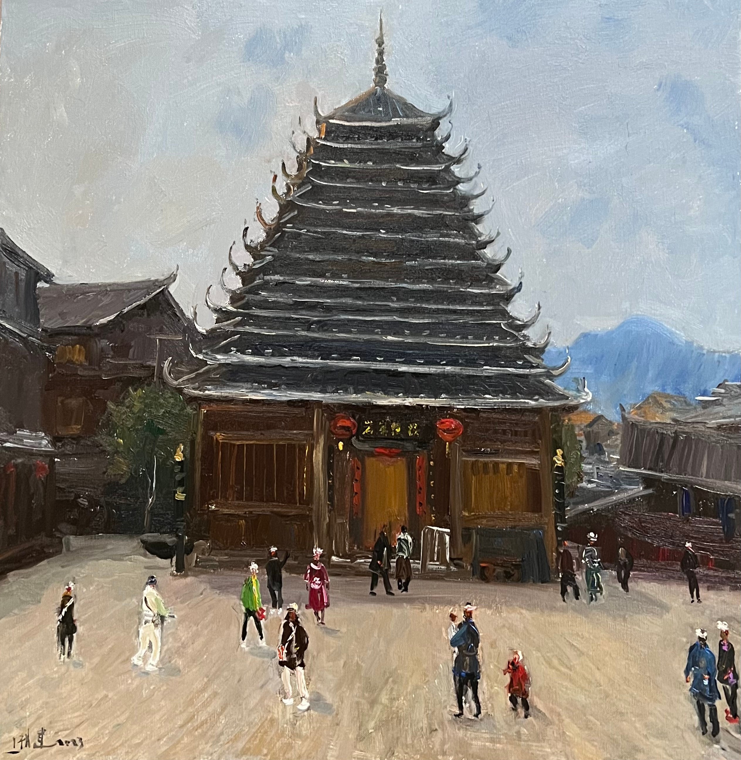 《平寨鼓楼》80×80cm