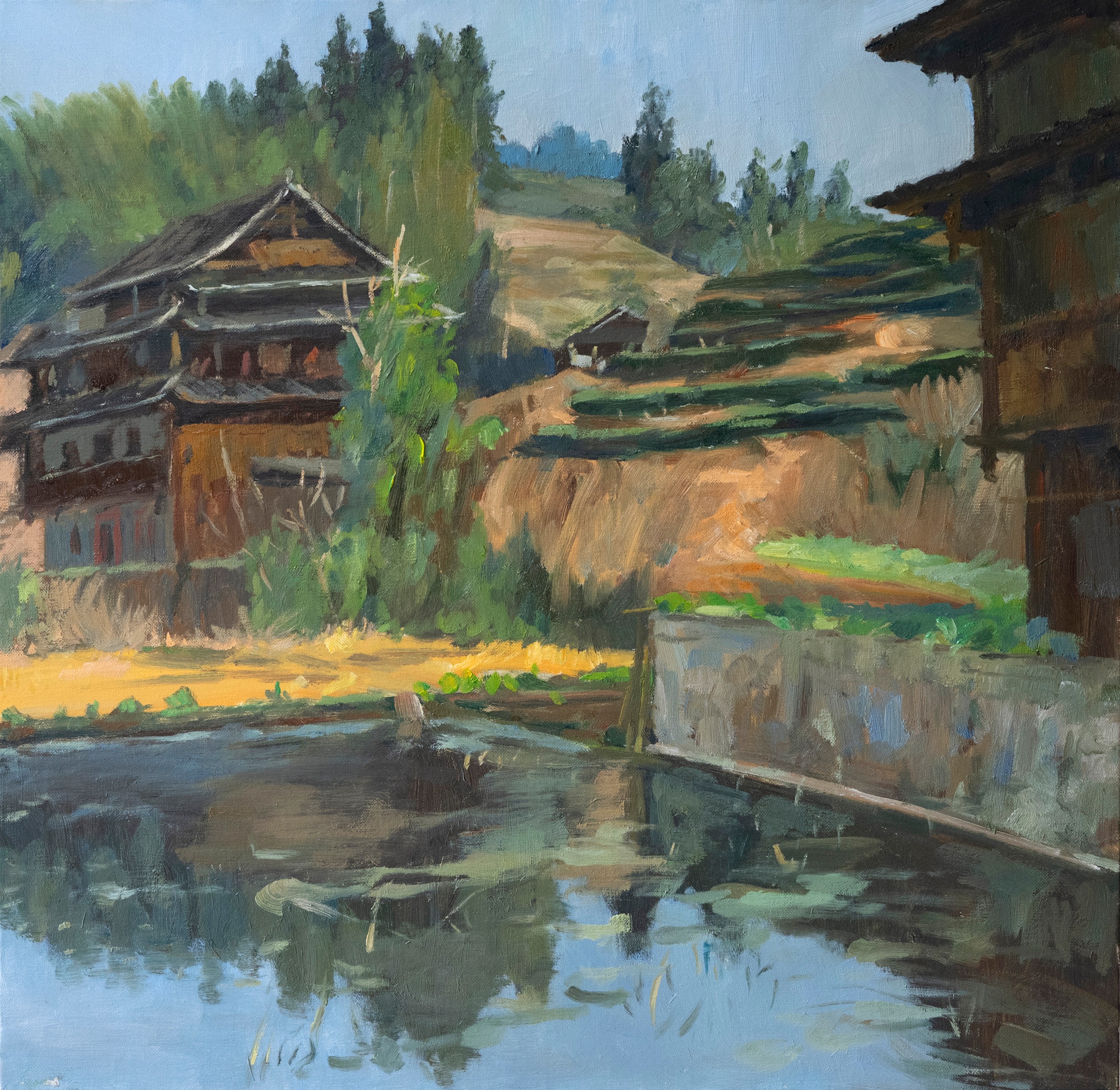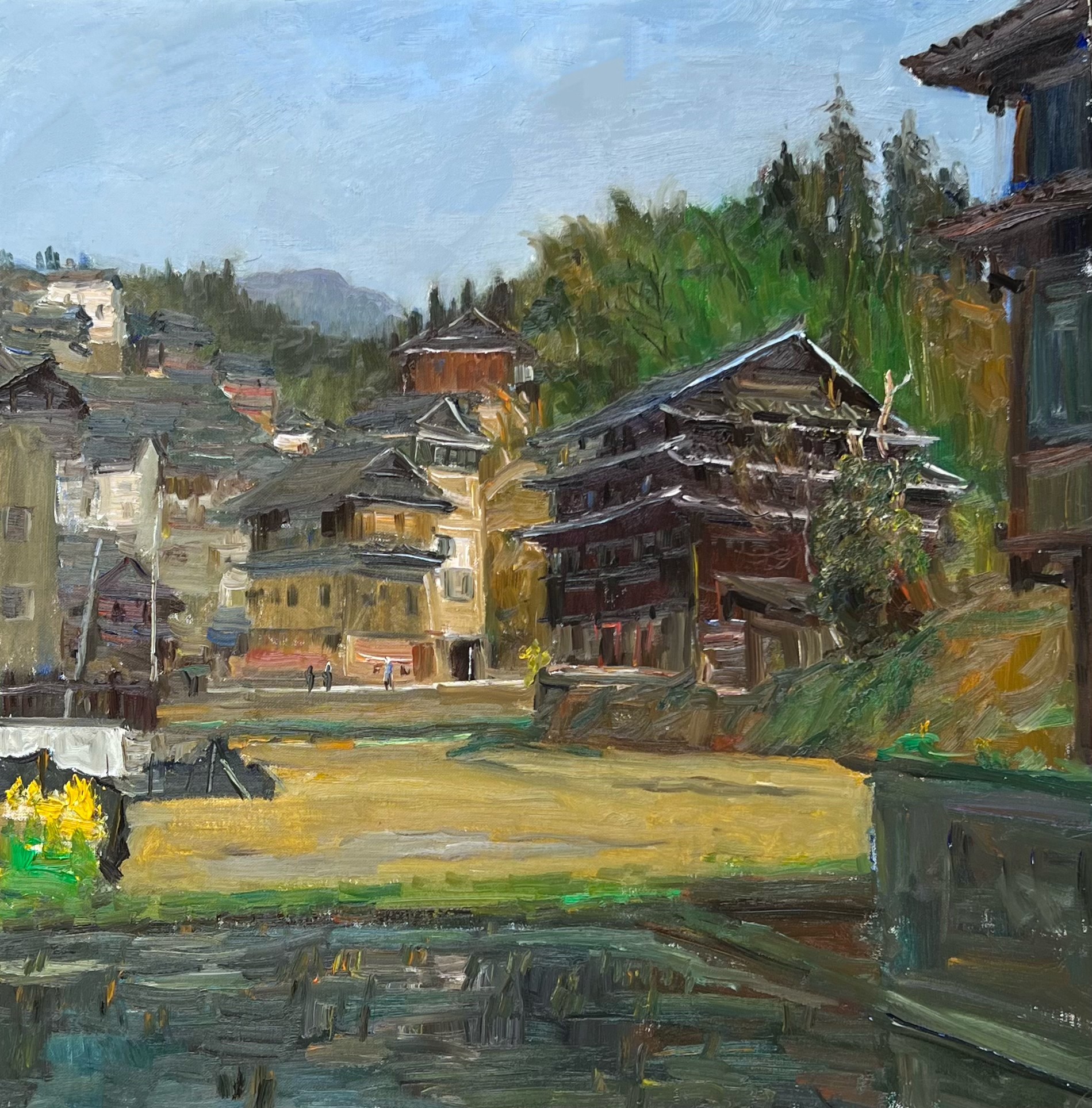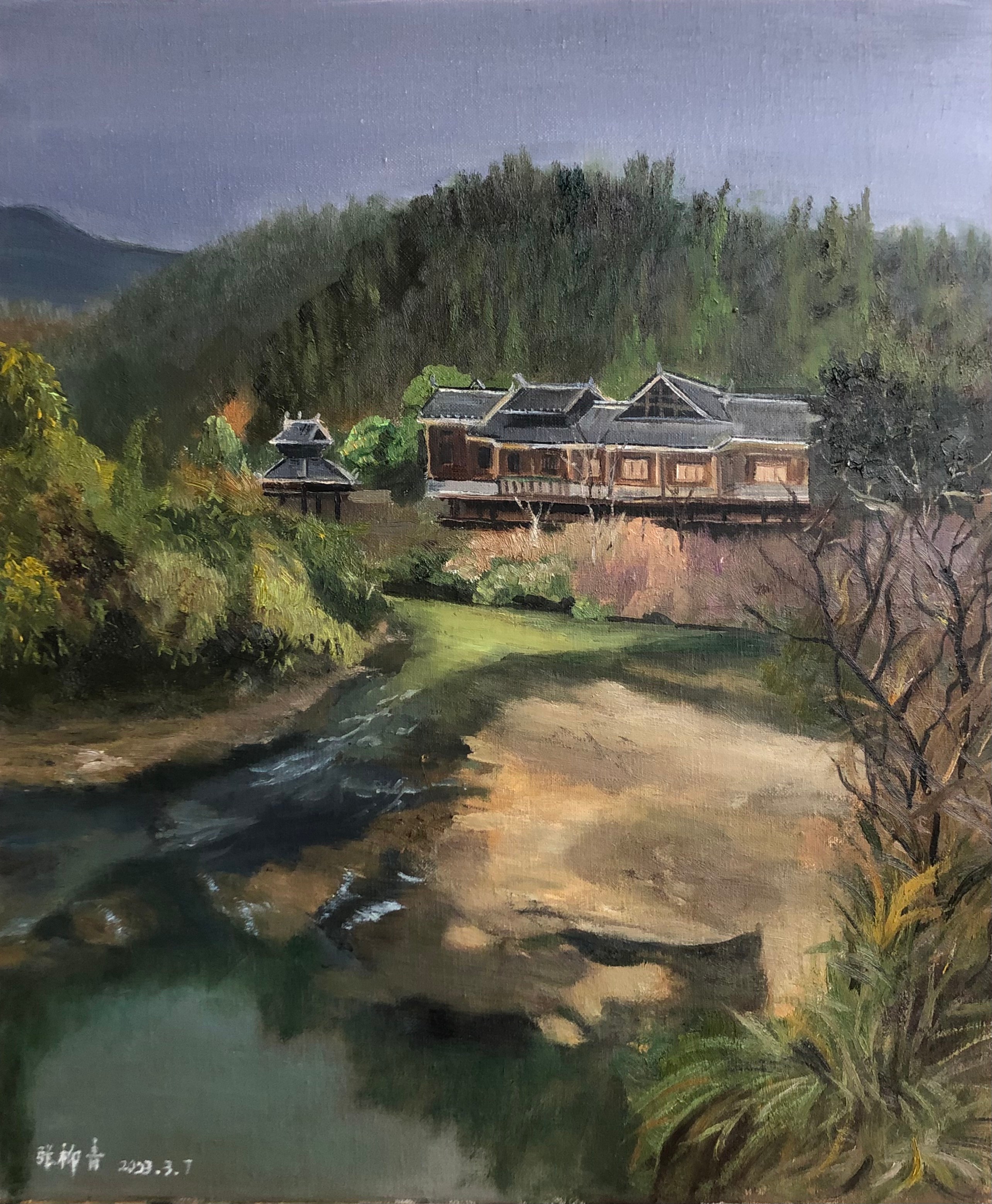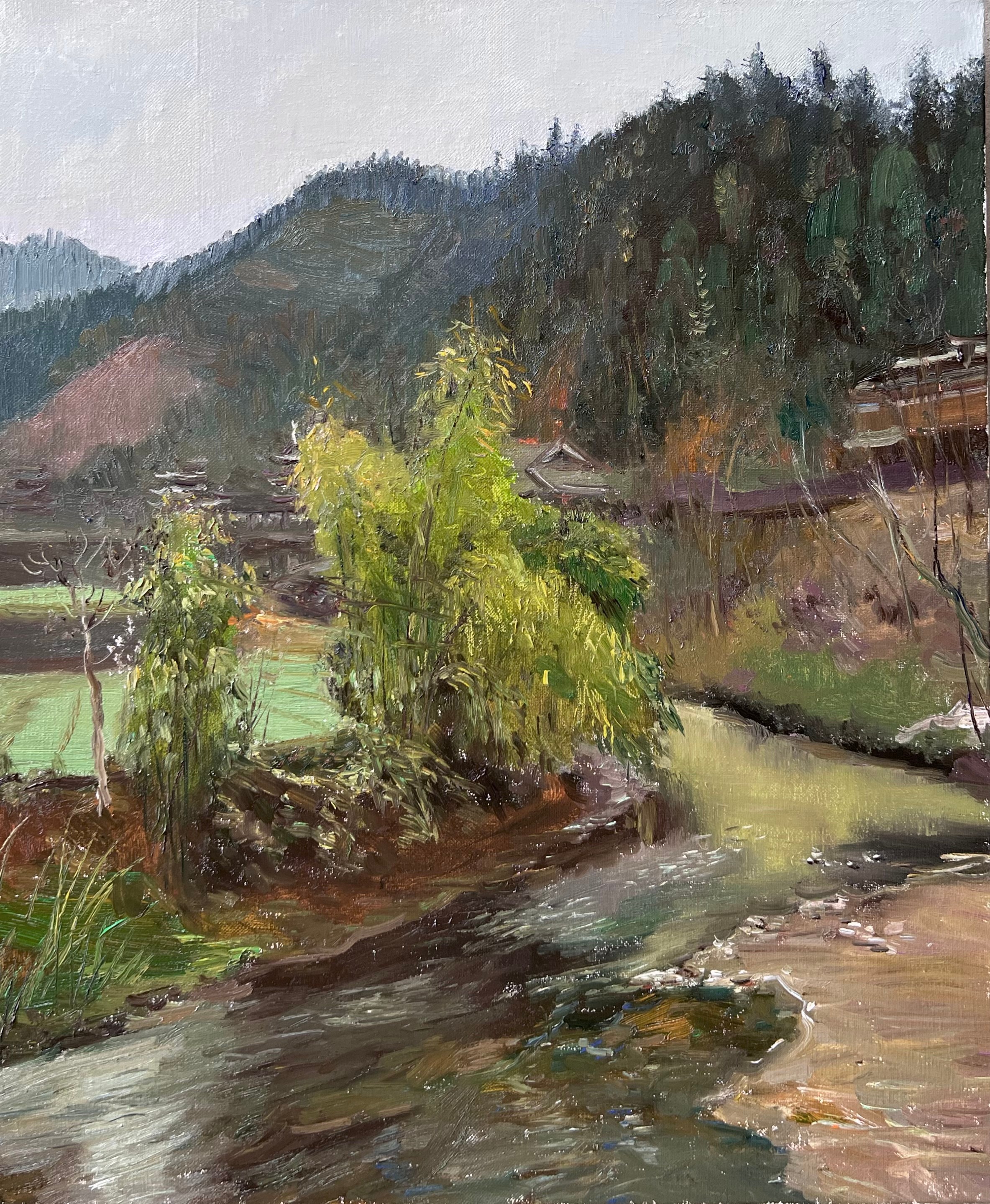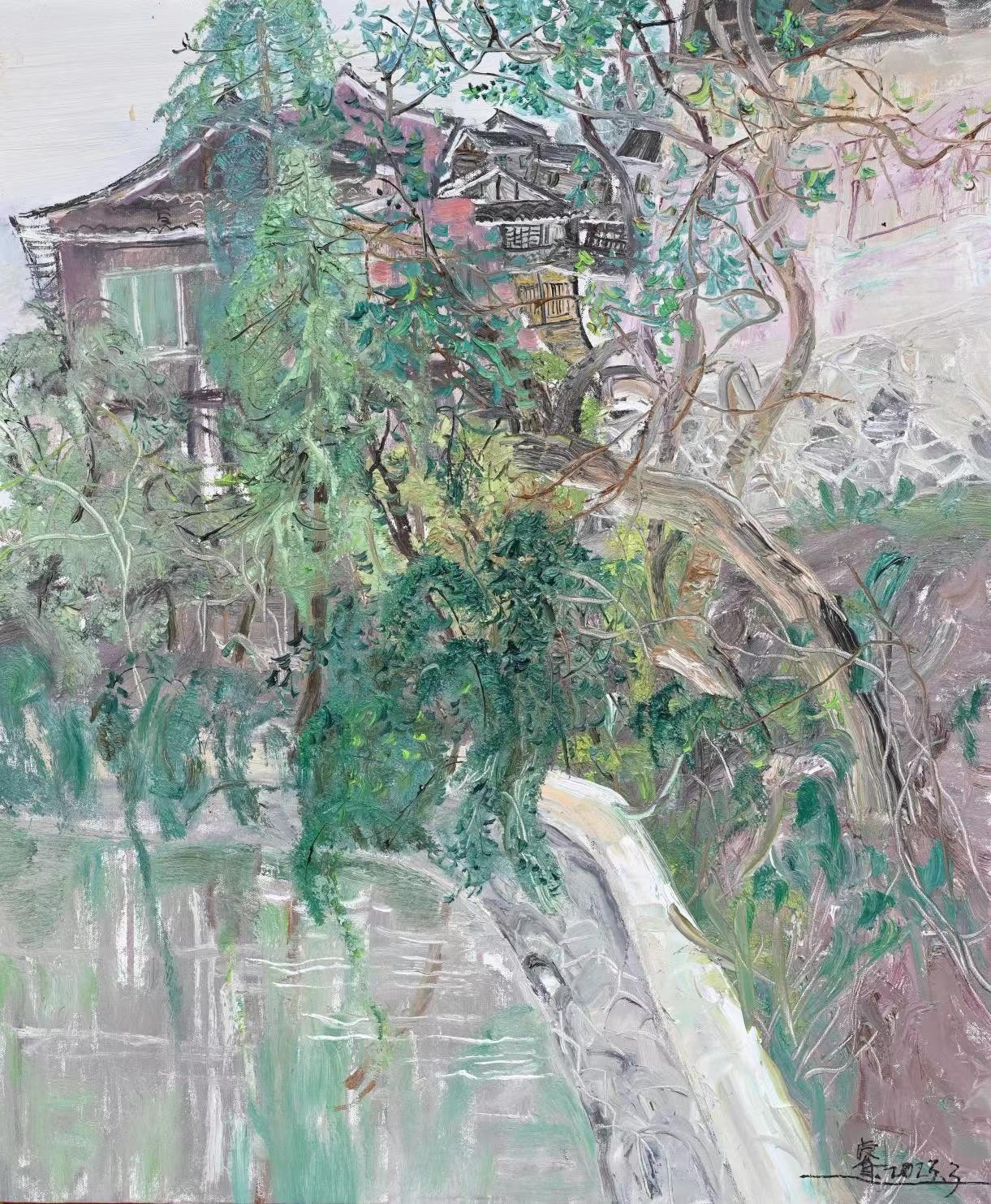 溪边的侗寨》 50x60cm