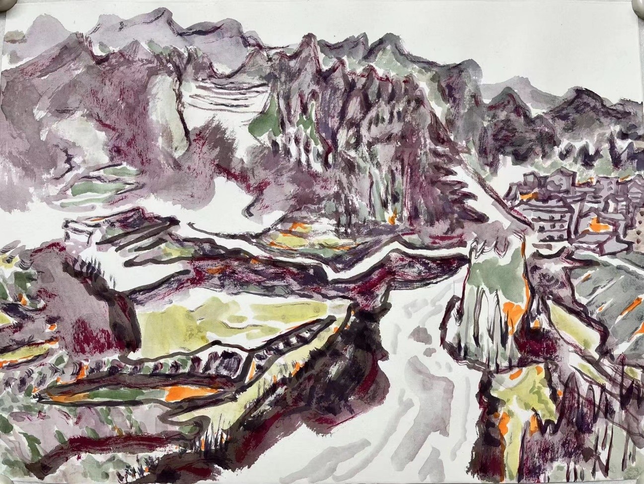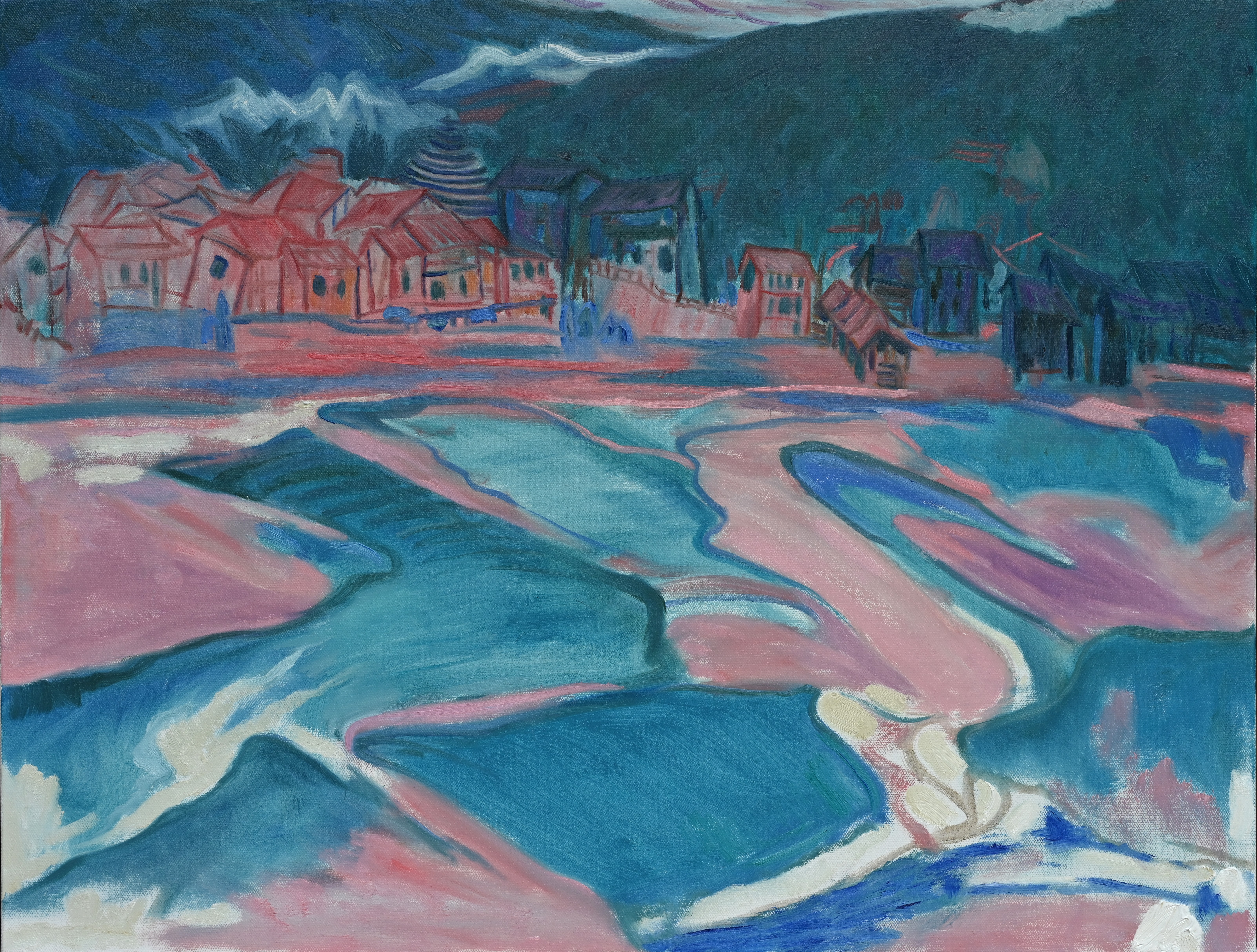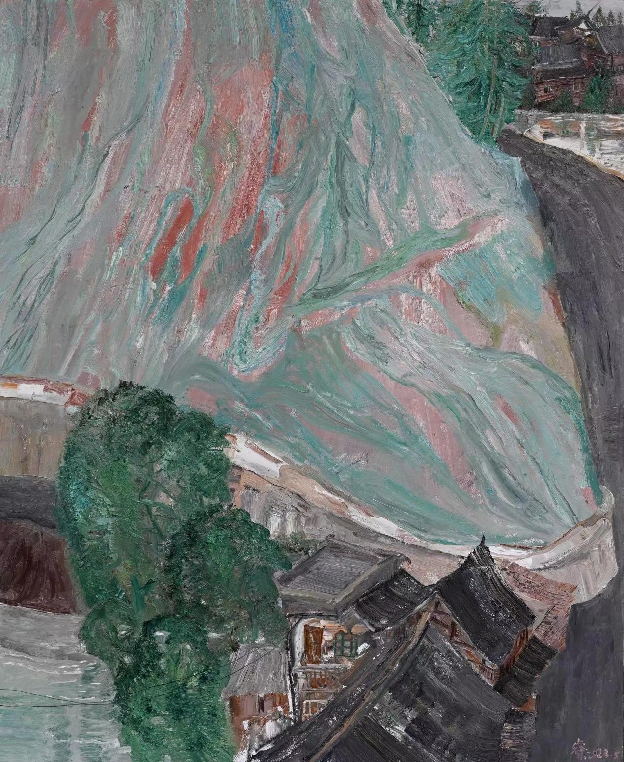 《山脚下的寨子》75×93cm