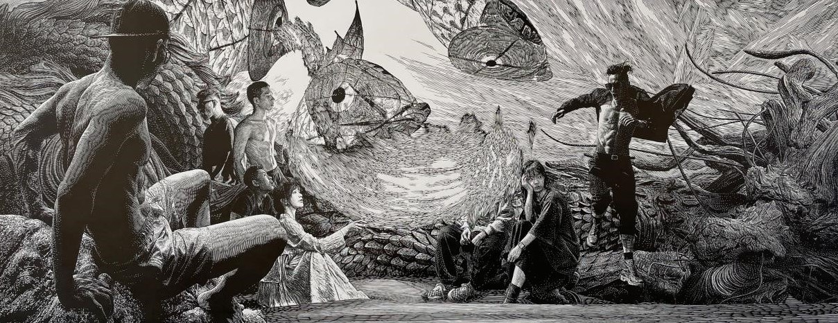 《庇护》 黑白木刻版画 70×180cm