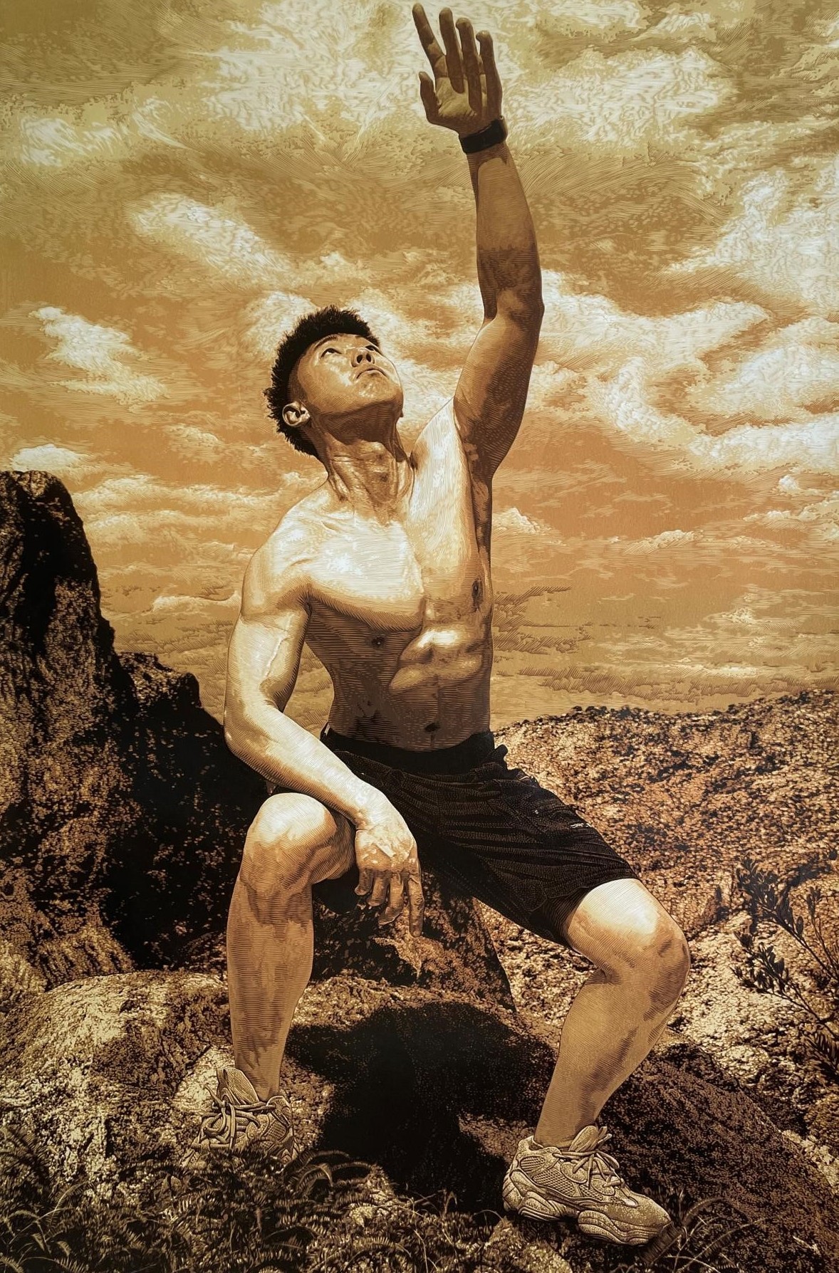 《向阳而生》 套色木刻版画 143×95cm