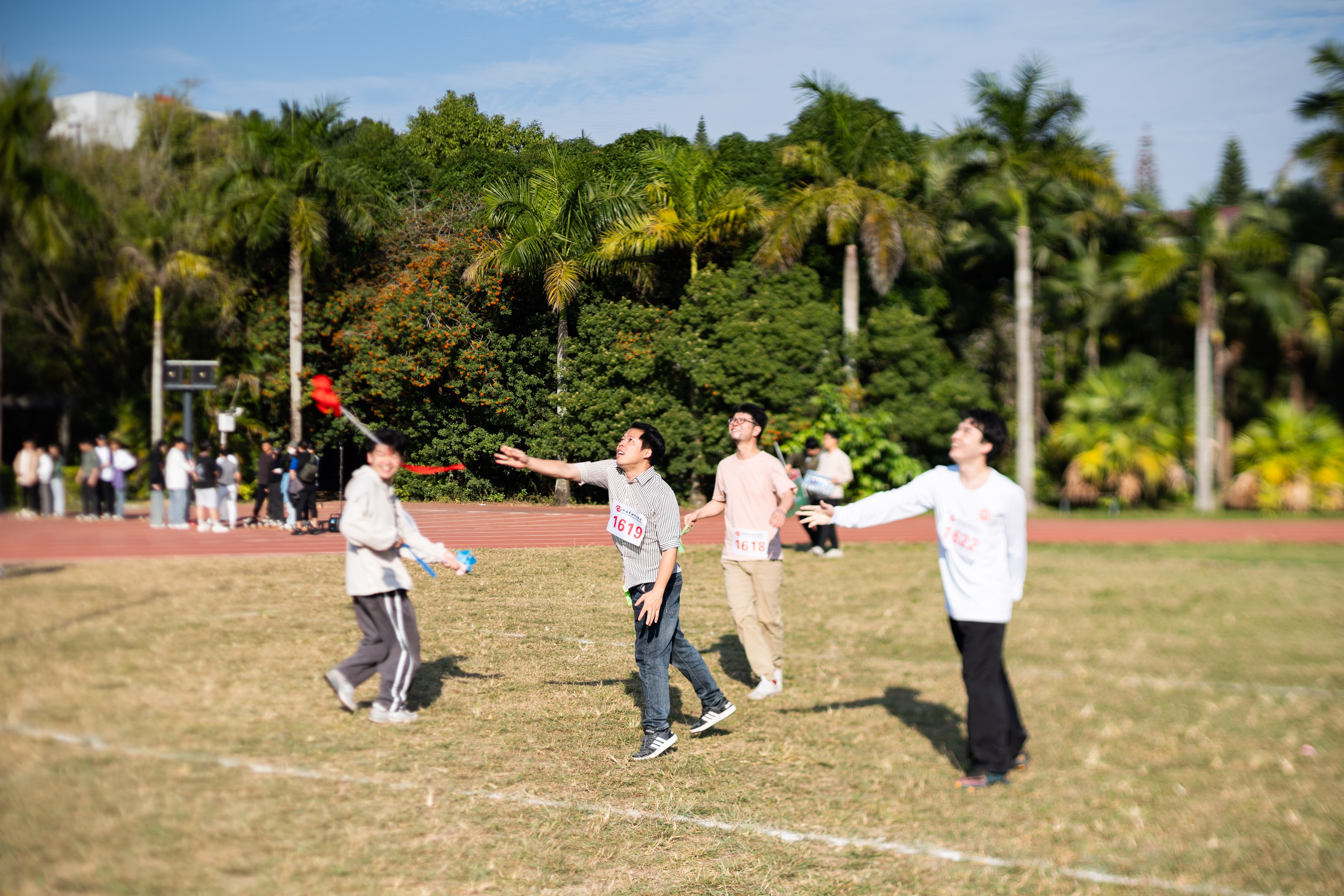 本次运动会,学院派出多支队伍参加背篓投绣球、高杆投绣球、三人板鞋、飞盘掷准、长绳“8”字跳五个项目的比赛。比赛过程中,运动员们齐心协力、奋勇拼搏,用矫健的身姿展现运动之美,传承民族文化之精髓。院长、副院长、学工办与各教研室主任、副主任等学院领导更是身先士卒,走到绿茵场上参与项目或带领运动员赛前活动热身,为教职工队伍诠释了良好的运动精神。