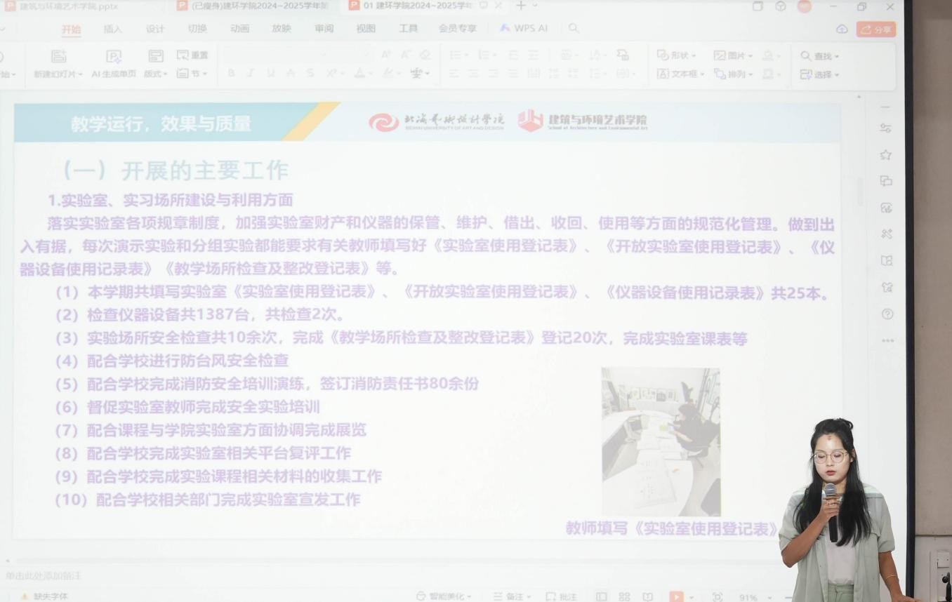 会议伊始,各部门有序汇报工作。环境设计教研室围绕师资建设、教学管理与成果转化展开,指出教师队伍结构不断优化,通过创新教学机制提升质量,师生在多项赛事中获奖。