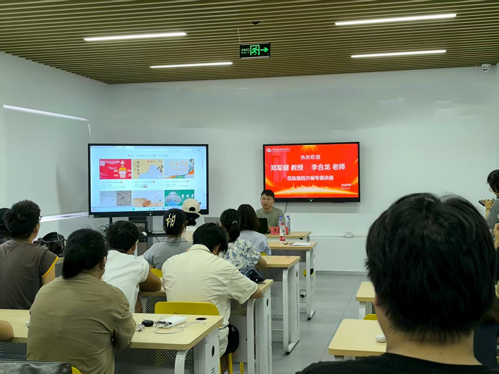 8月23日上午,原广西书法家协会主席、硕士生导师郑军健教授以传统文化与书法为主题开启首场讲座。郑教授结合自身数十年的书法创作与研究经验,深入浅出地阐释了传统文化对书法艺术的关系。紧接着由故宫博物院研究员李合龙老师带来以故宫文物分享与汉字书法系统的使用为主题的讲座,分享文物与书法的魅力。讲座使学生们深受启发,认识到中国书法的魅力与价值。