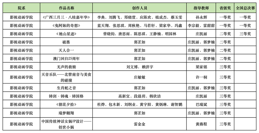 赛事开展过程中,我校影视动画学院积极组织师生参与,引导大家结合专业知识,围绕文化传承、创新创意等方向开展创作。经校级选拔、省级评审及全国总决赛等环节,学院多件作品脱颖而出。其中,全国总决赛获一等奖2项、三等奖1项;省级比赛获一等奖2项、二等奖4项、三等奖7项。