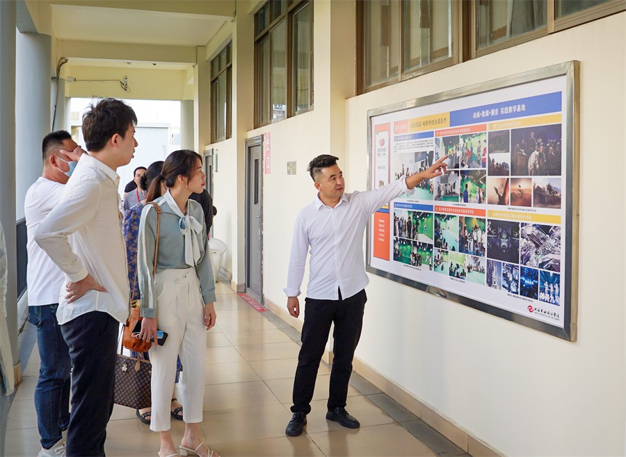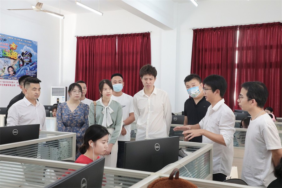 我校董事长、副校长郑念贻,动画与传媒学院院长孙永辉及各部门负责人对企业代表团队的到来表示热烈欢迎,并陪同企业代表团实地参观了动画与传媒学院各个实验室建设情况及优秀成果,孙永辉院长详细介绍了基本情况,展示项目制作进度,随后到西校区图书馆一楼参观教学成果展,企业代表团队对我院教学环境、实验室建设、培养质量和教学成果表示高度认可。