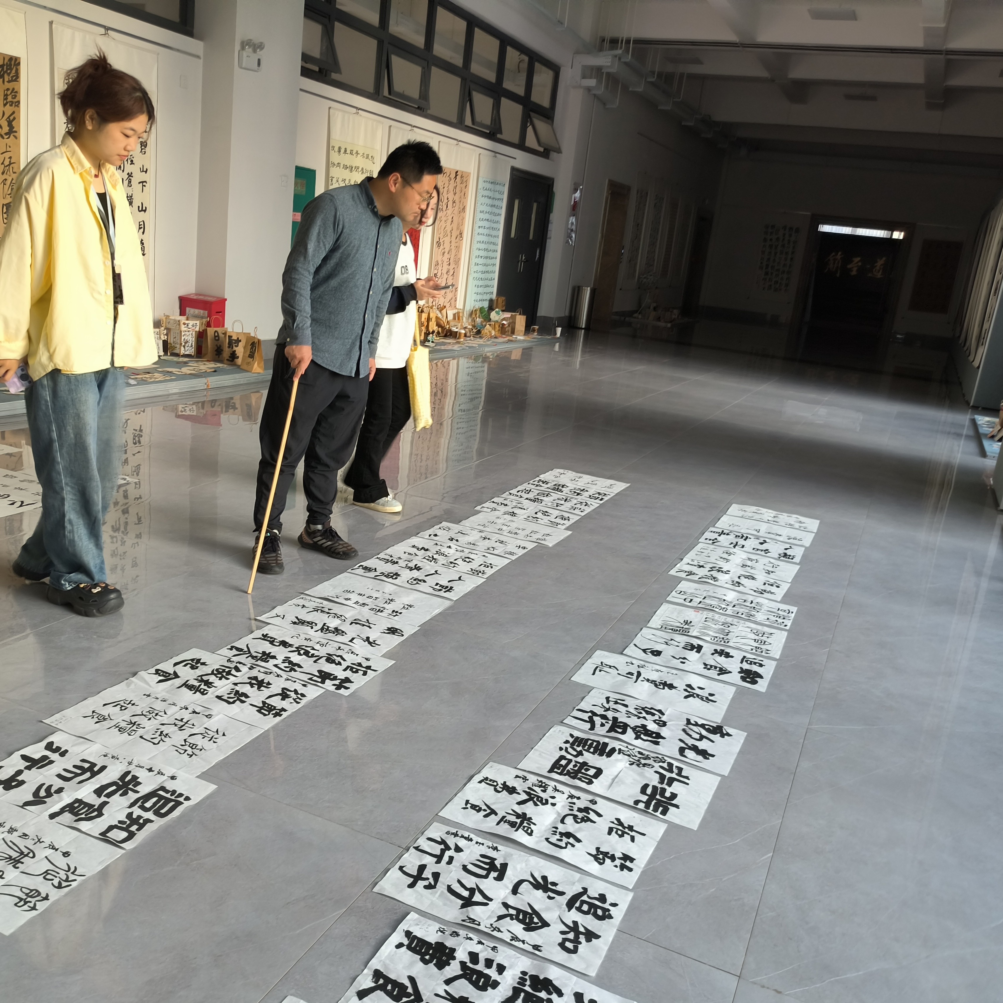 活动结束次日,书法学院党支部副书记左云飞,学工办主任、分团委书记李家琪,分团委指导老师石建玲对现场书写作品与集章打卡内容进行评分。